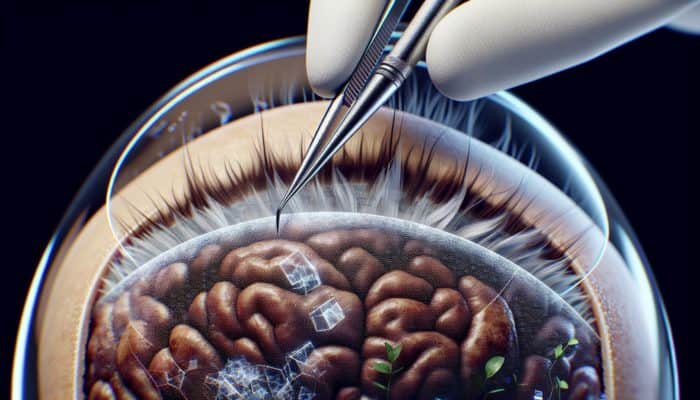 A close-up of wig bonding using medical-grade adhesive, showing a seamless transition to the scalp.